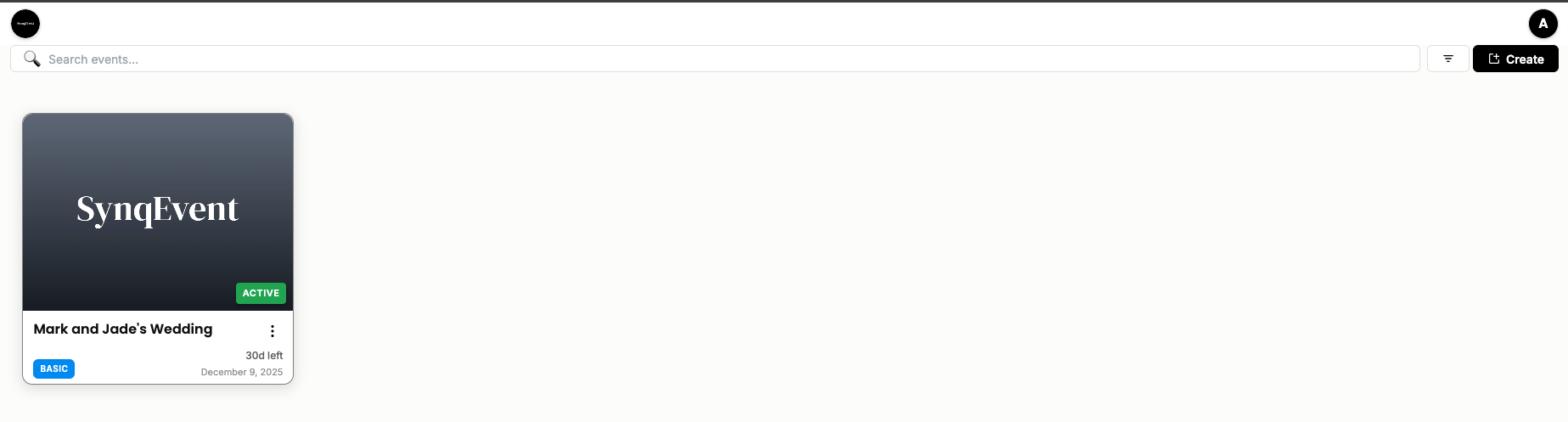 After creation, your event starts immediately and guests can begin uploading photos right away.